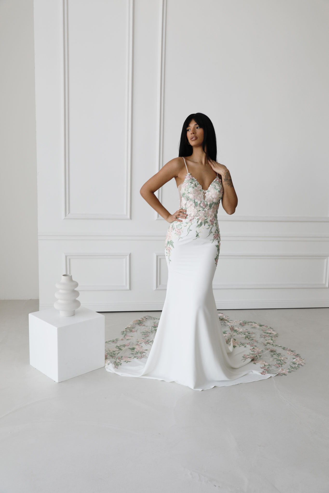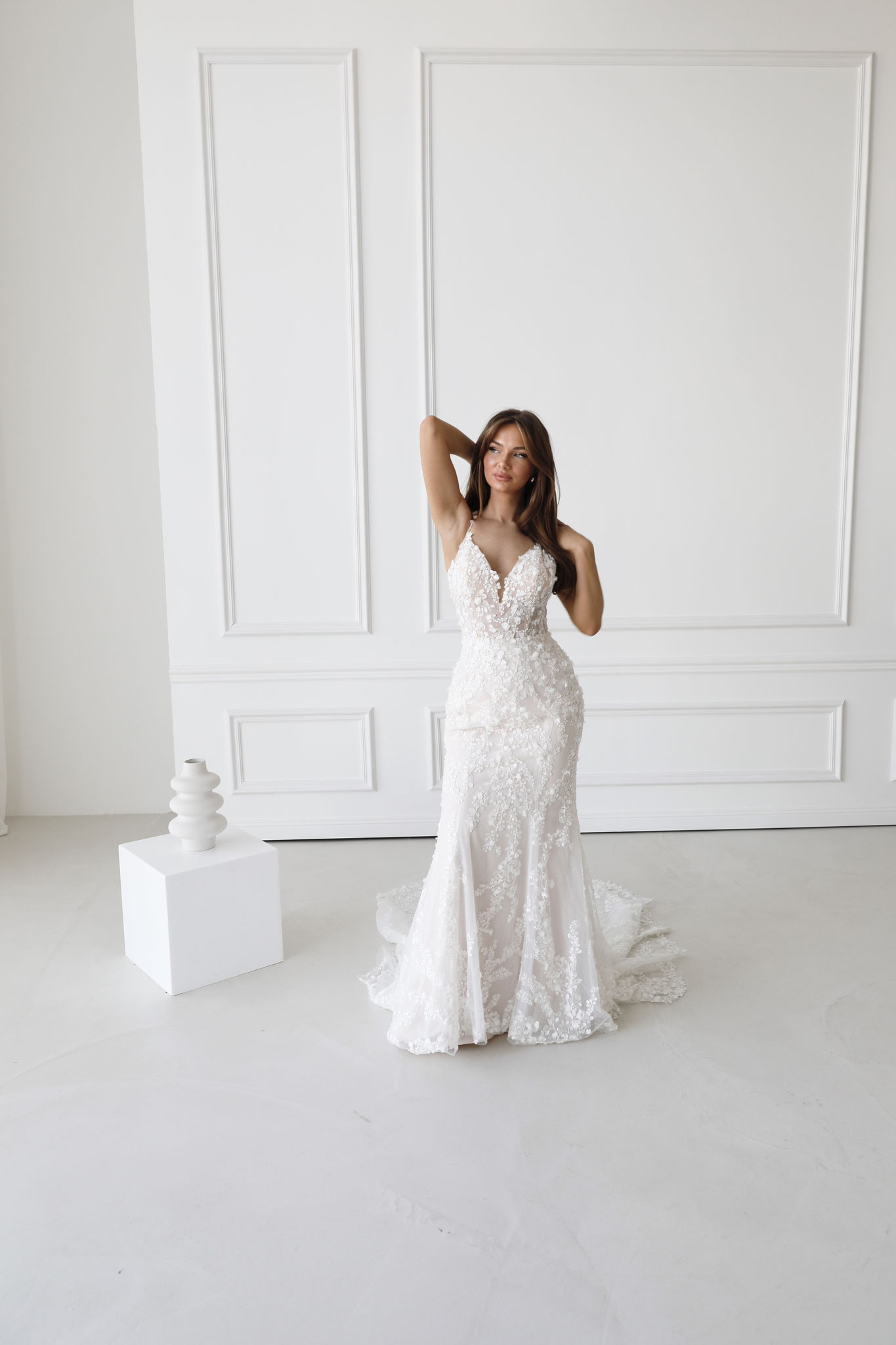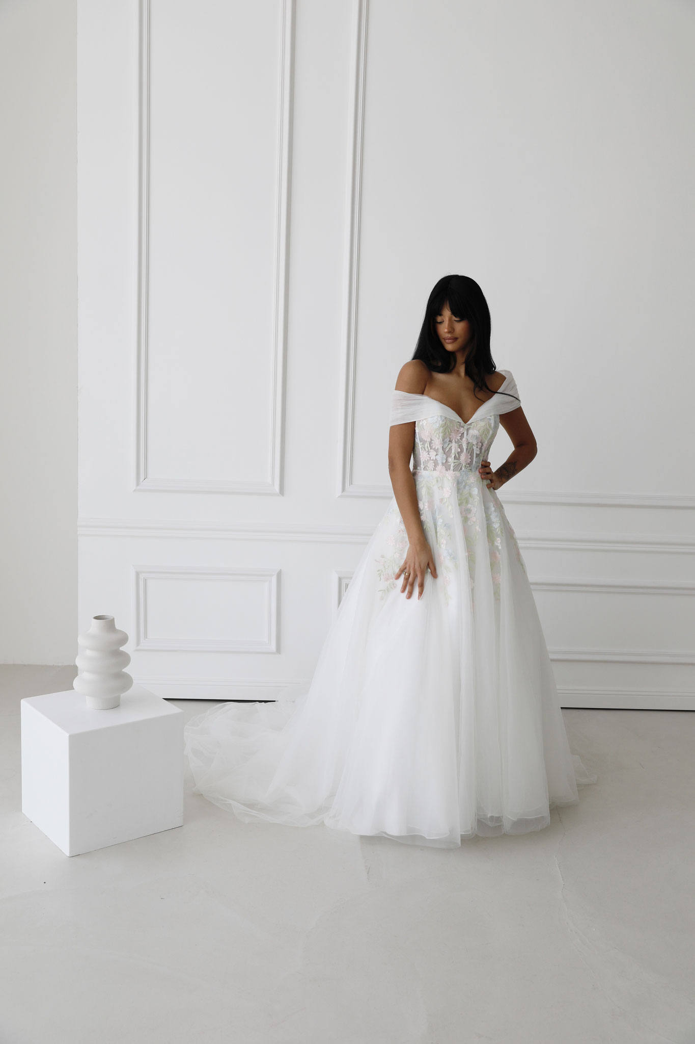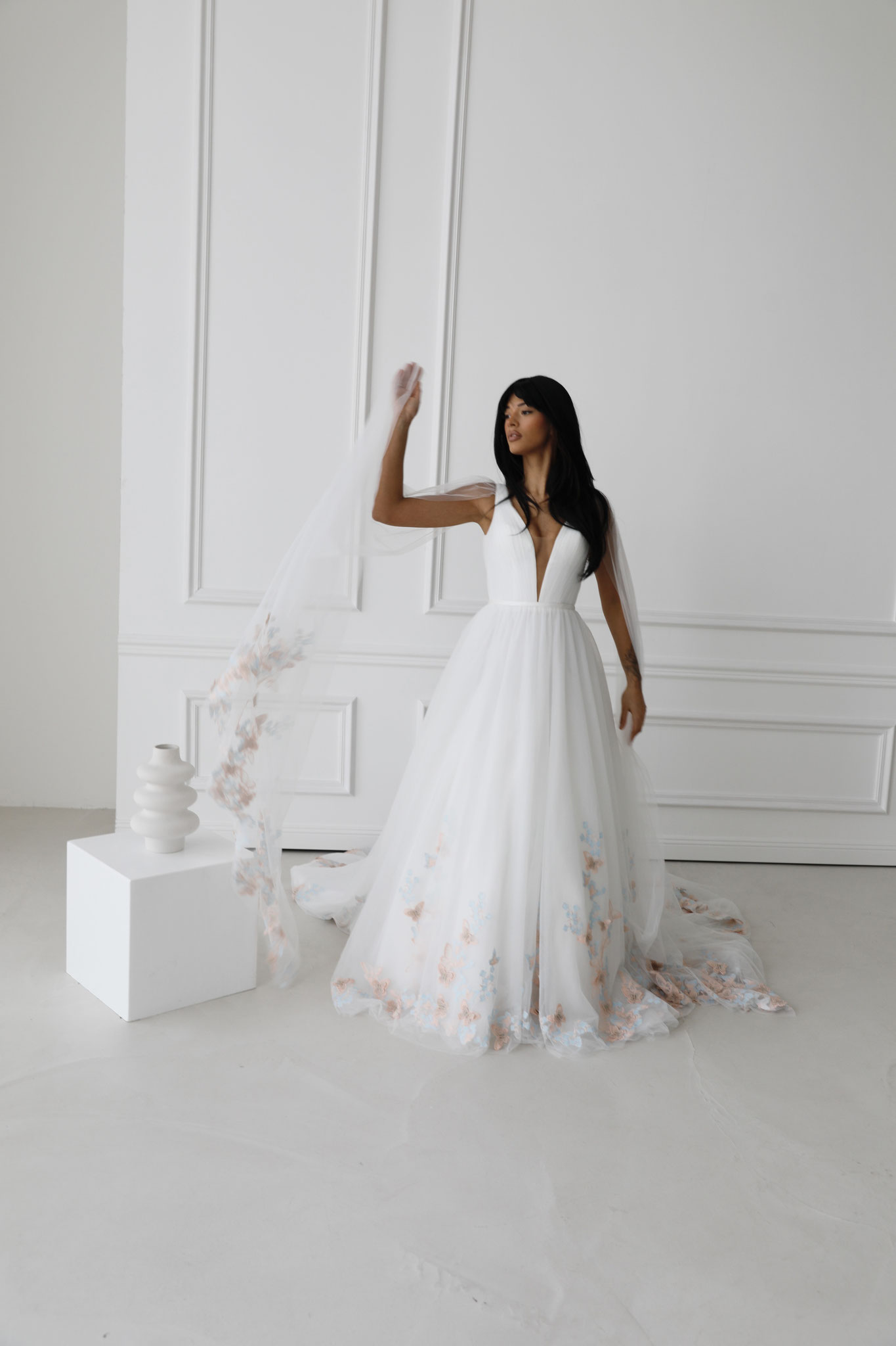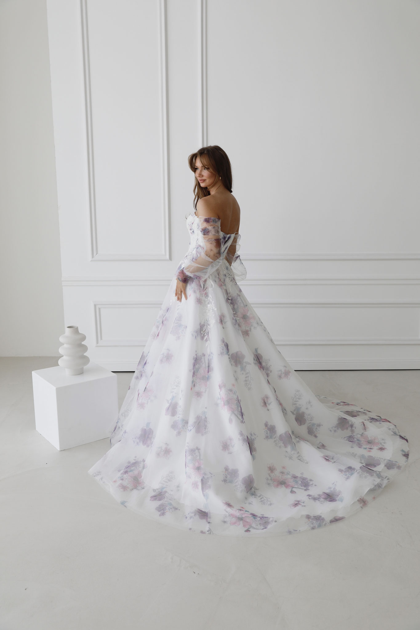 Unsere mit Blumen und floraler Spitze verzierten Brautkleider sind eine Hommage an die Schönheit der Natur. Zarte Blumenmuster und aufwendige Spitzenapplikationen verleihen jedem Kleid eine romantische Note und machen es perfekt für die Braut, die ihren besonderen Tag mit einem Hauch von Frische und Weiblichkeit feiern möchte.