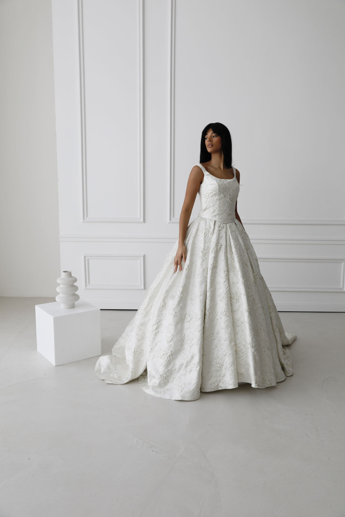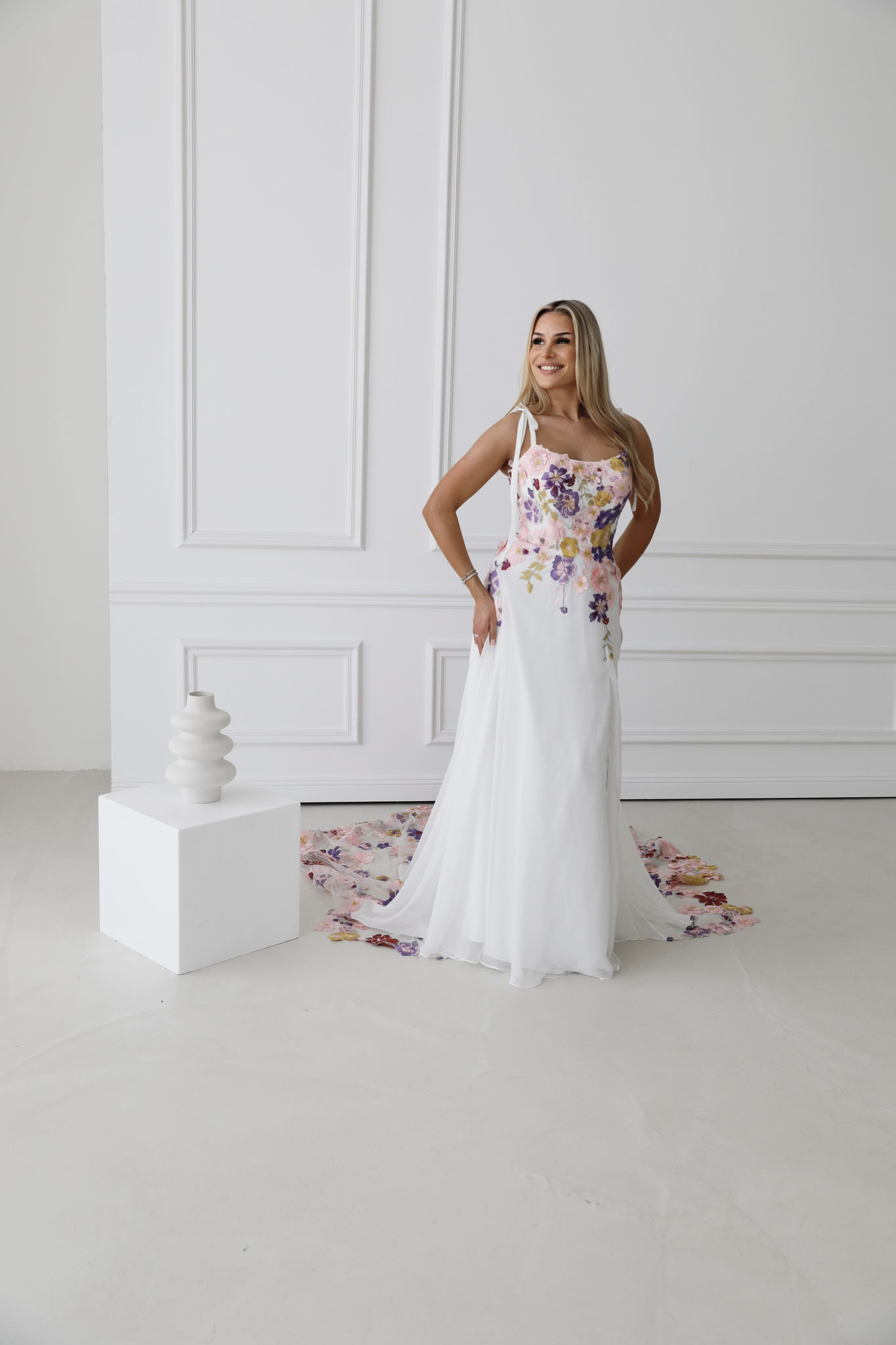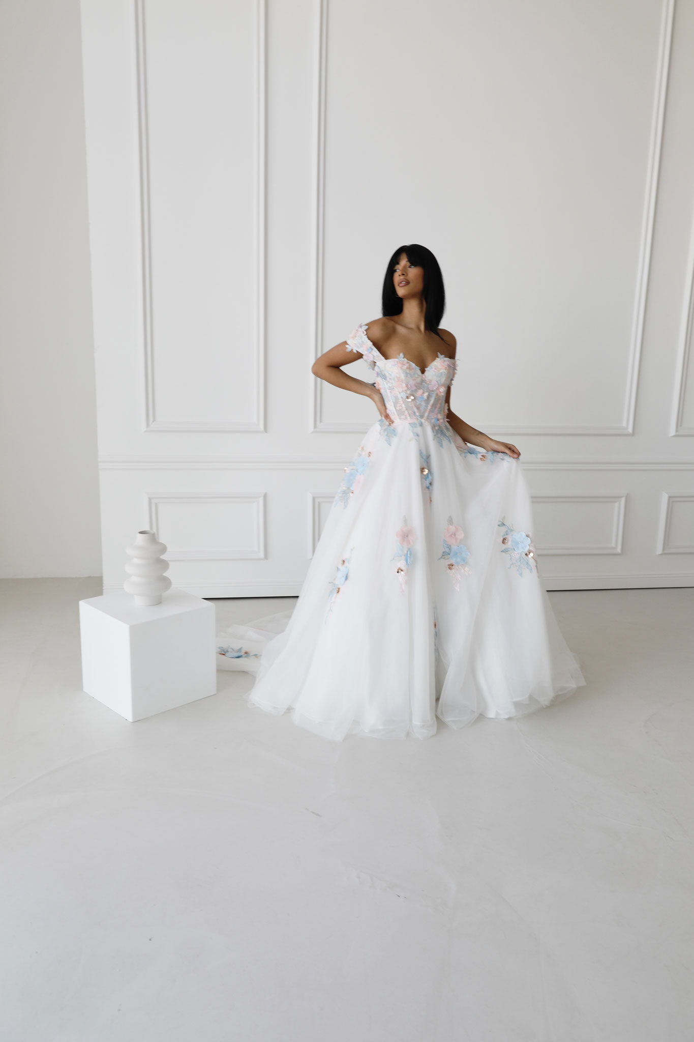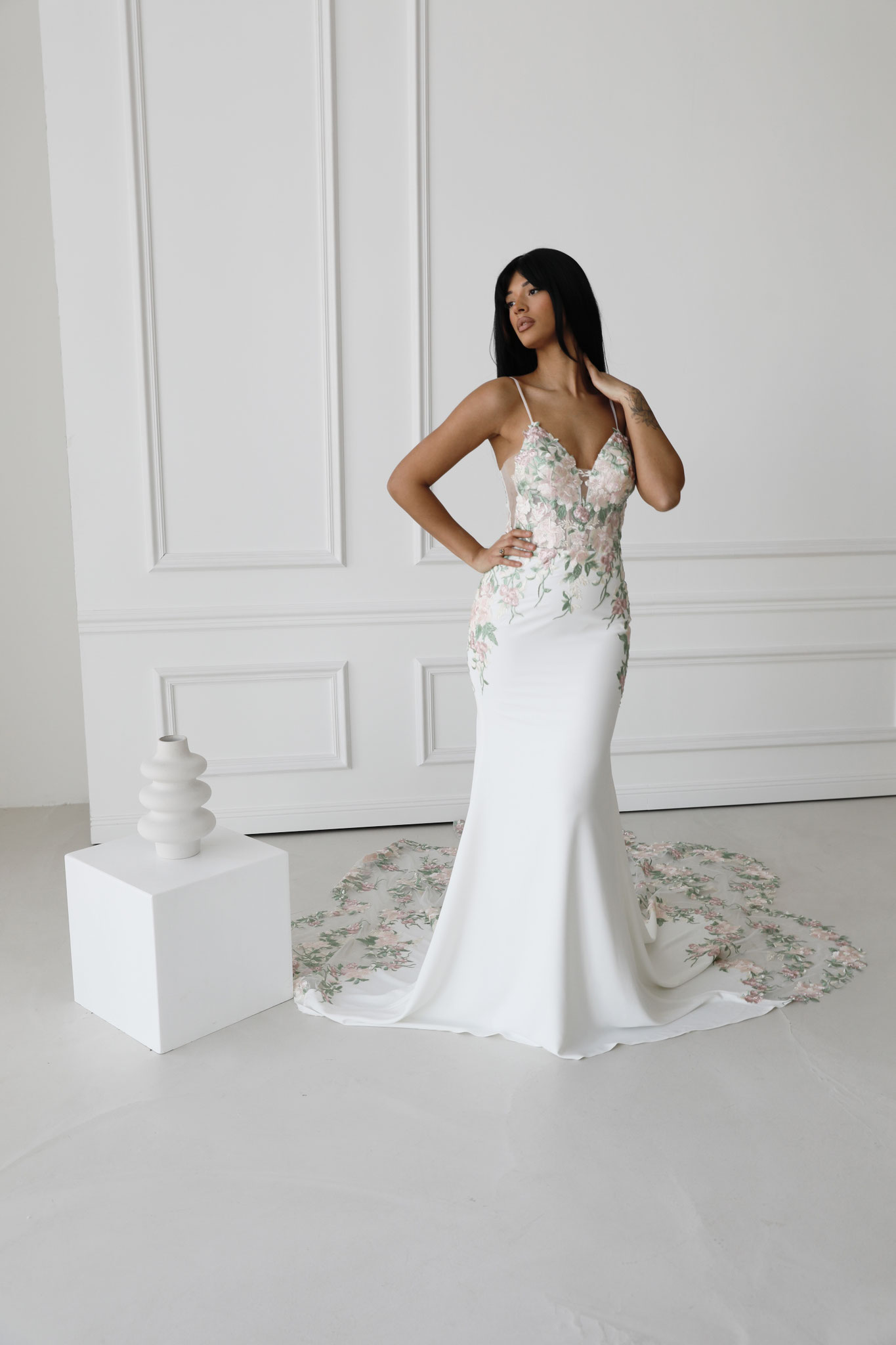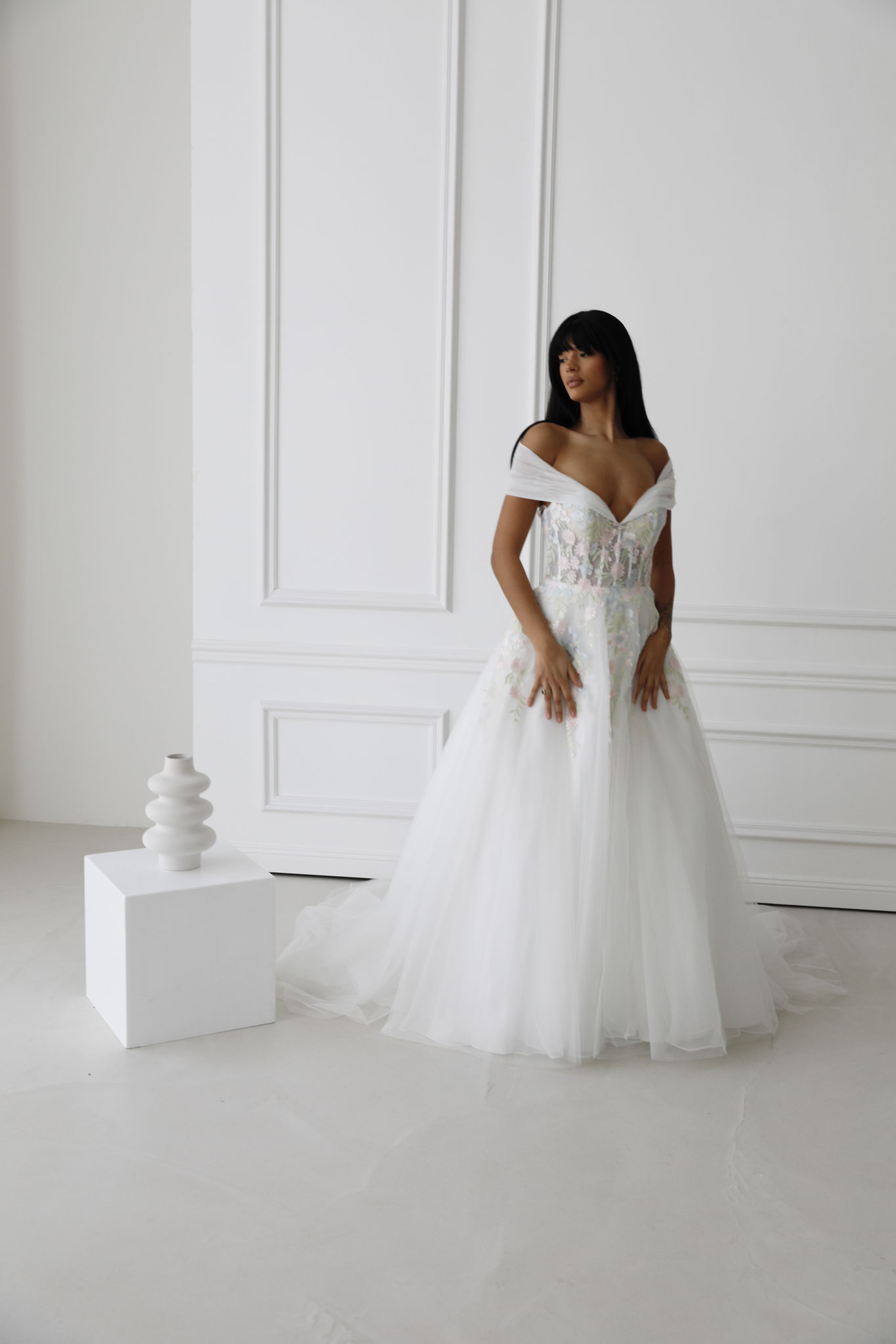Unsere mit Blumen und floraler Spitze verzierten Brautkleider sind eine Hommage an die Schönheit der Natur. Zarte Blumenmuster und aufwendige Spitzenapplikationen verleihen jedem Kleid eine romantische Note und machen es perfekt für die Braut, die ihren besonderen Tag mit einem Hauch von Frische und Weiblichkeit feiern möchte.