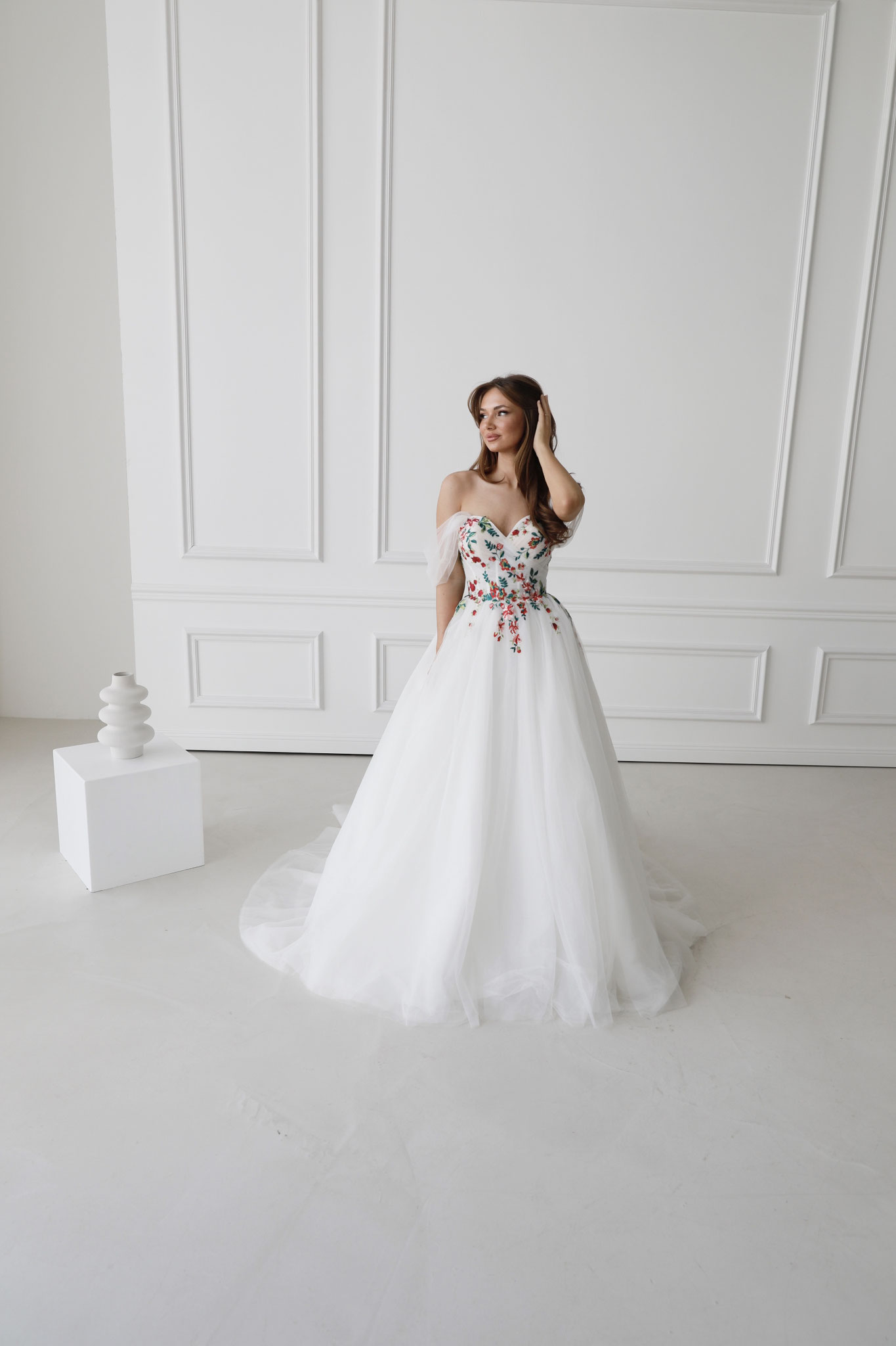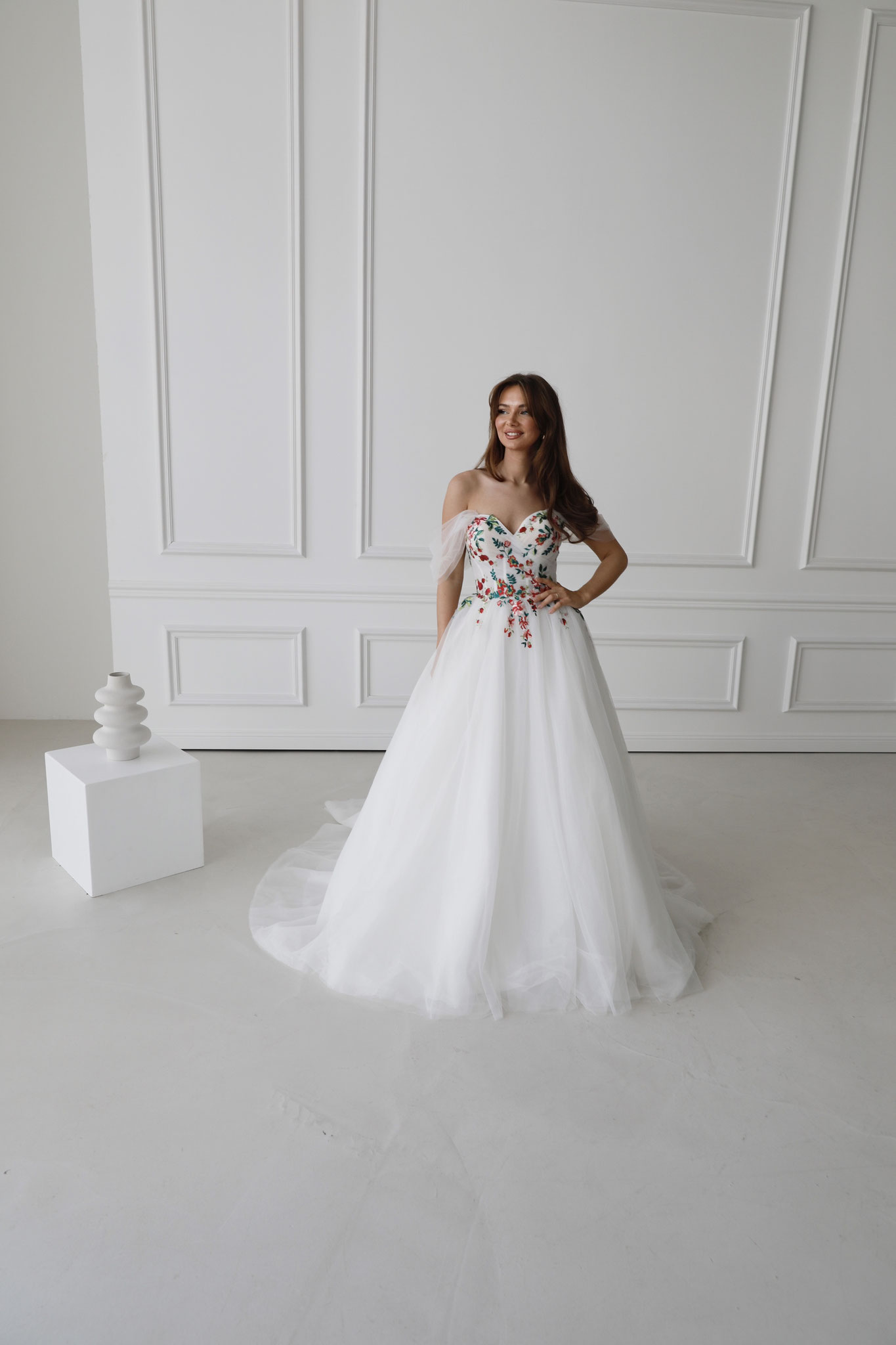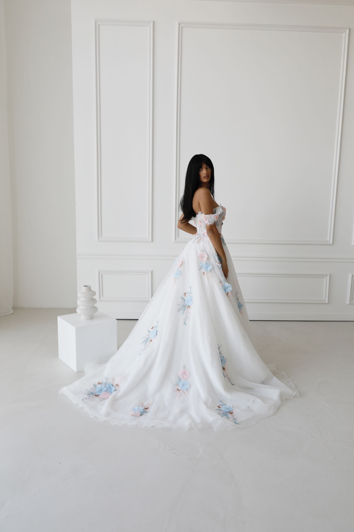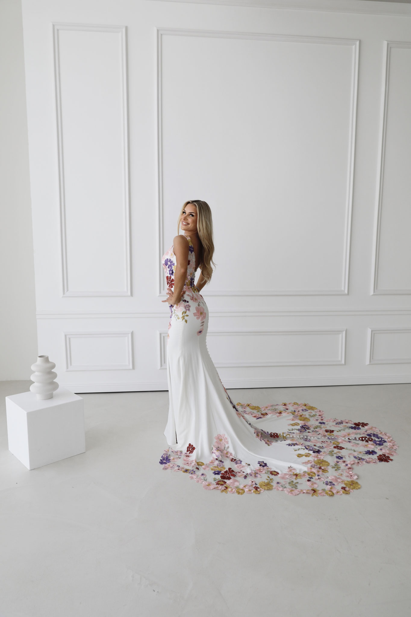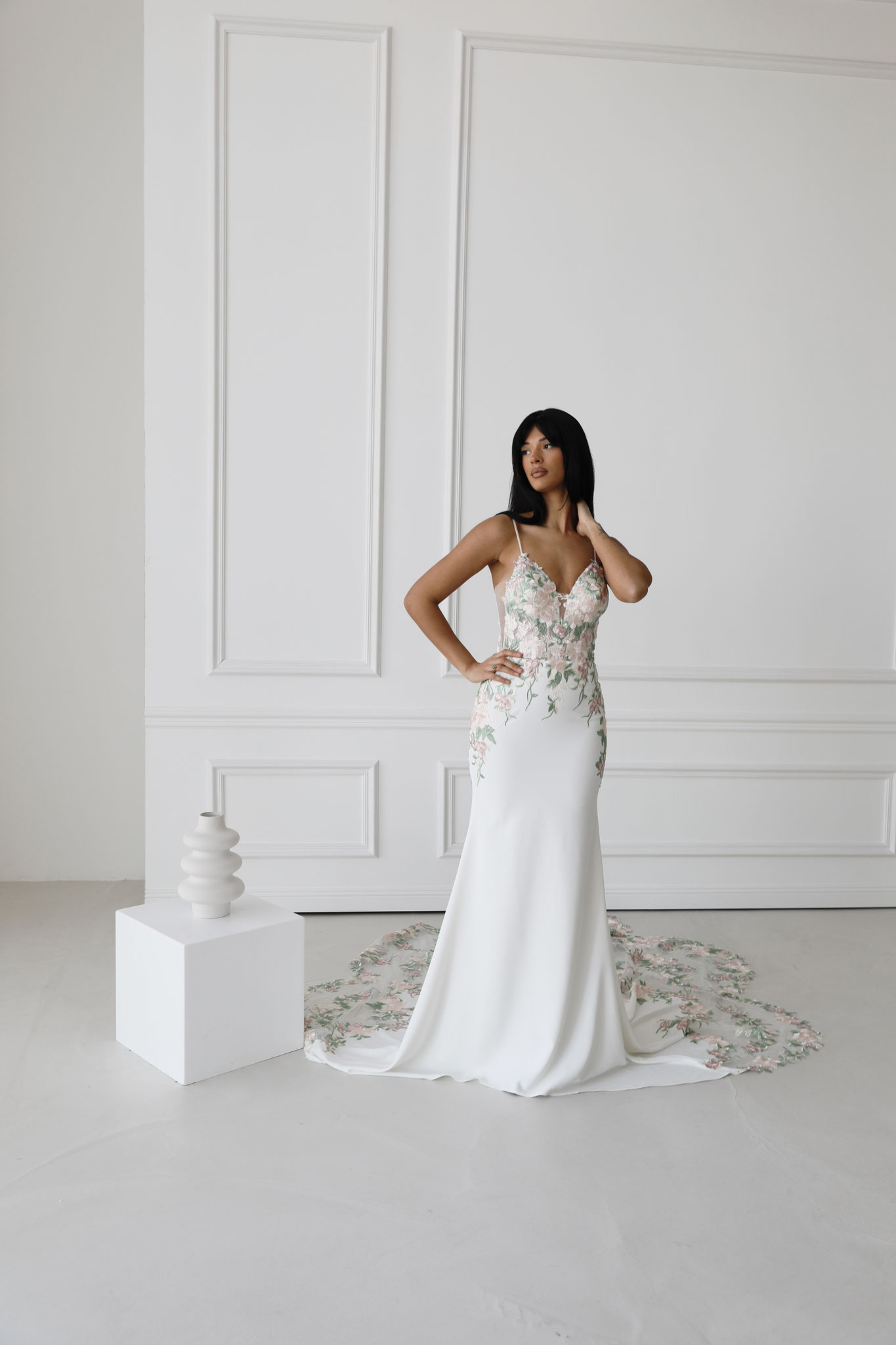 Unsere mit Blumen und floraler Spitze verzierten Brautkleider sind eine Hommage an die Schönheit der Natur. Zarte Blumenmuster und aufwendige Spitzenapplikationen verleihen jedem Kleid eine romantische Note und machen es perfekt für die Braut, die ihren besonderen Tag mit einem Hauch von Frische und Weiblichkeit feiern möchte.
