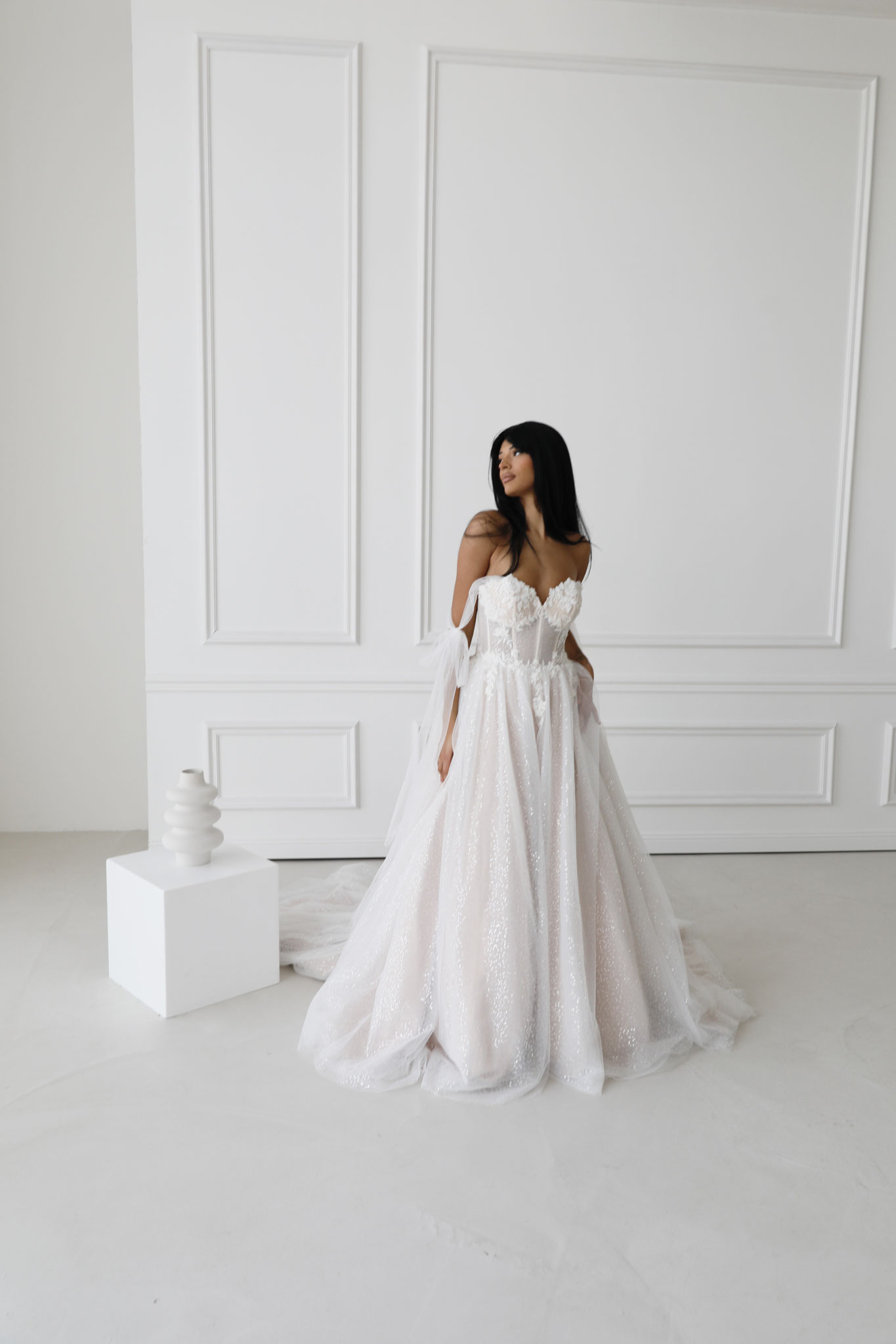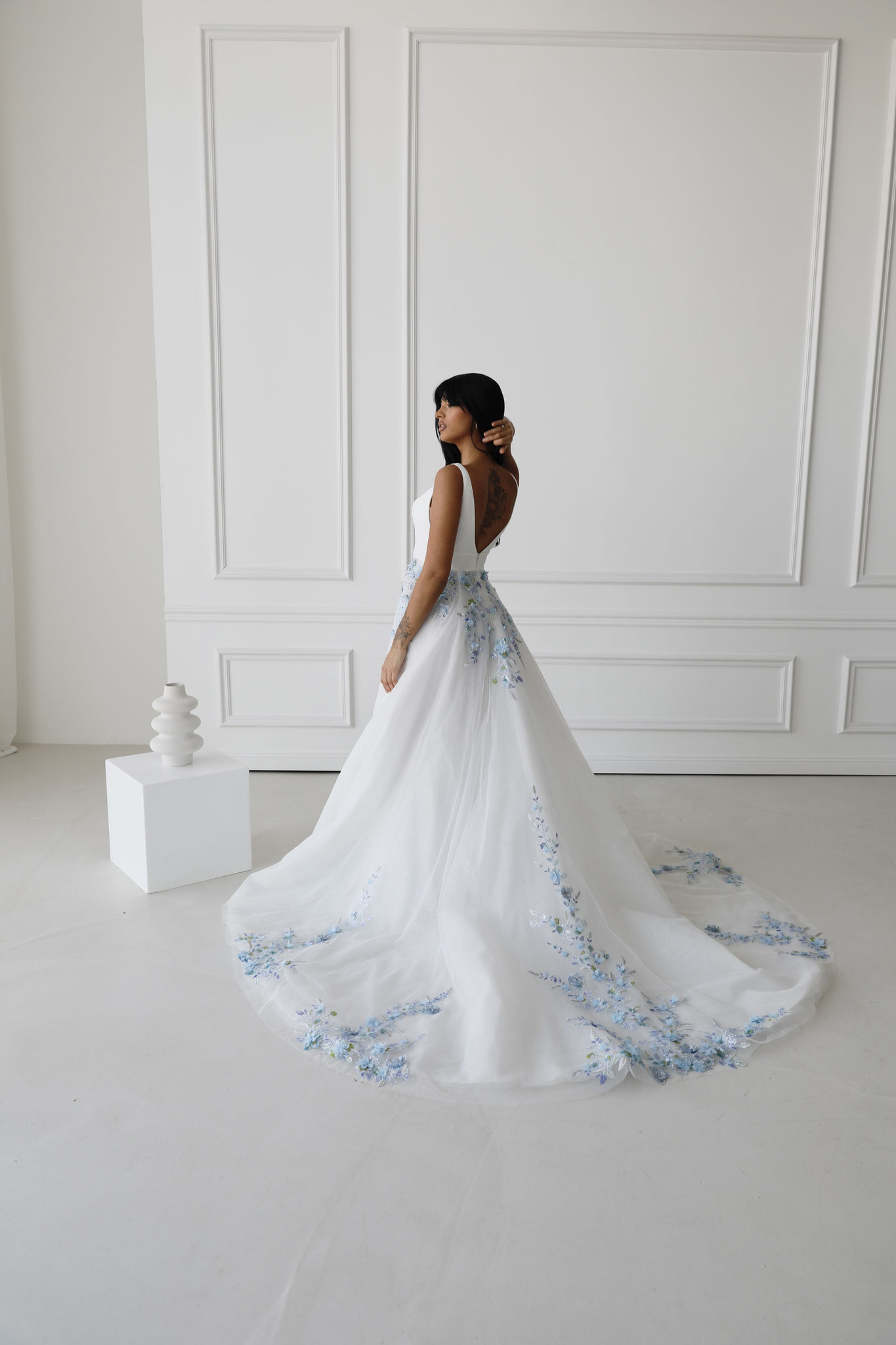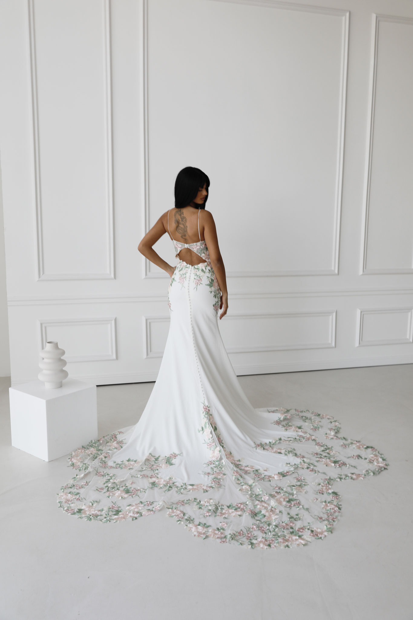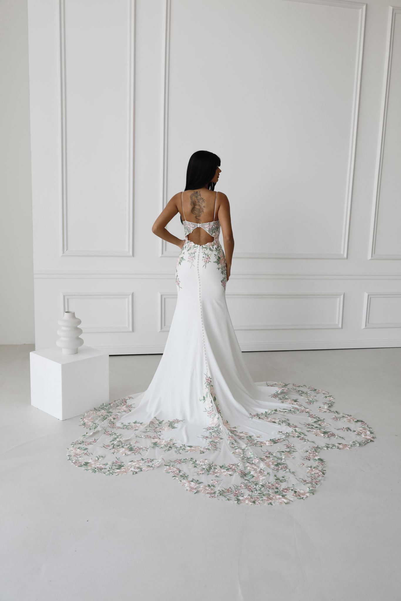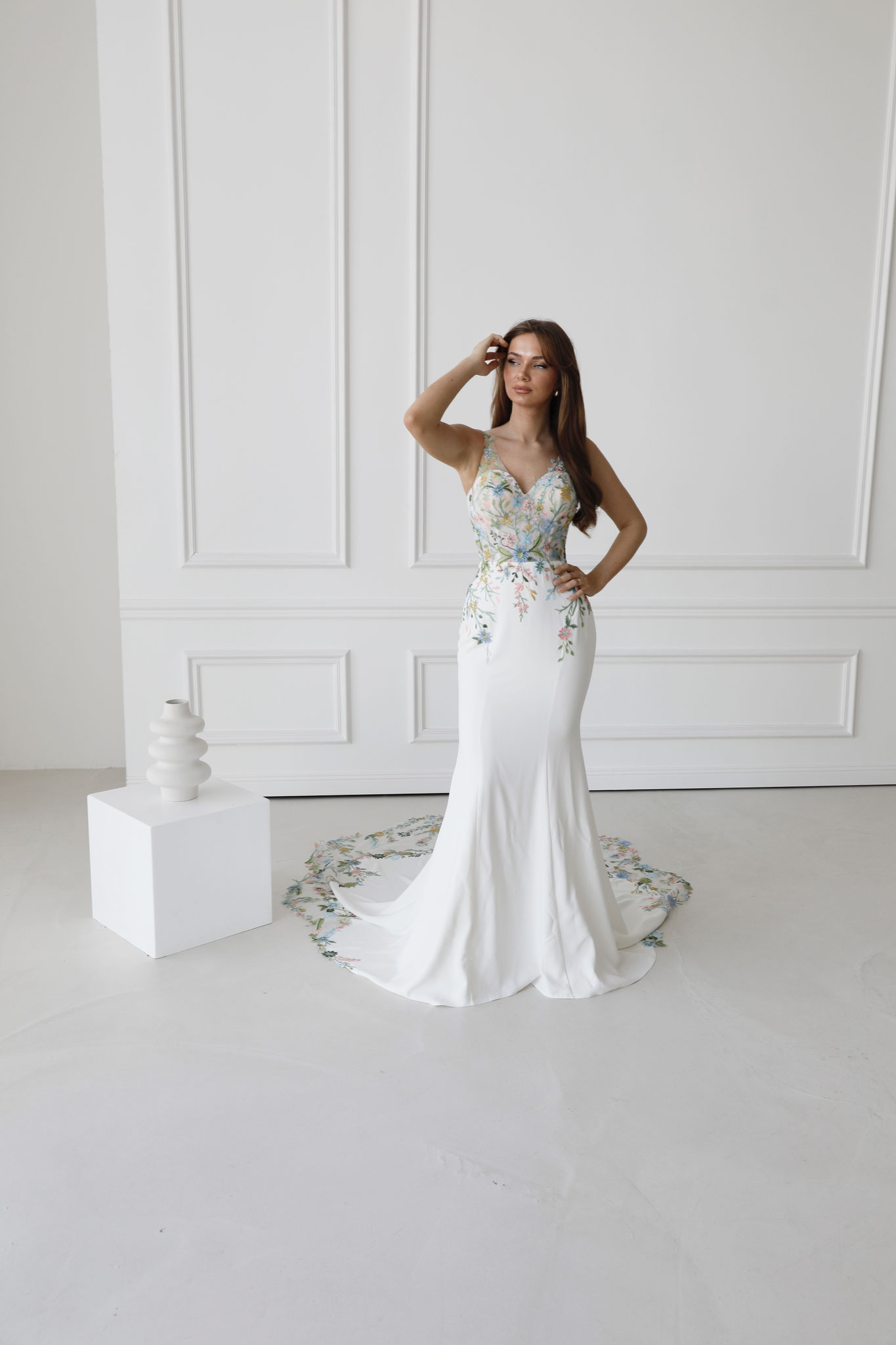 Unsere mit Blumen und floraler Spitze verzierten Brautkleider sind eine Hommage an die Schönheit der Natur. Zarte Blumenmuster und aufwendige Spitzenapplikationen verleihen jedem Kleid eine romantische Note und machen es perfekt für die Braut, die ihren besonderen Tag mit einem Hauch von Frische und Weiblichkeit feiern möchte.
